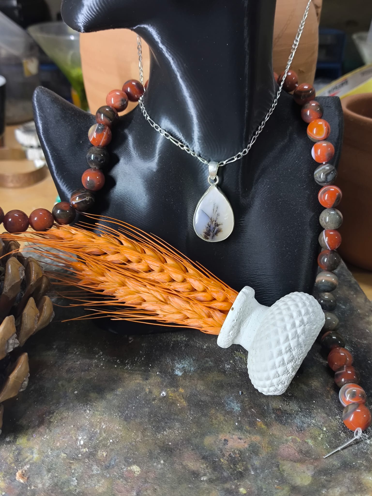 El Yapımı 925 Ayar Dentritli Akik Taşlı Kolye