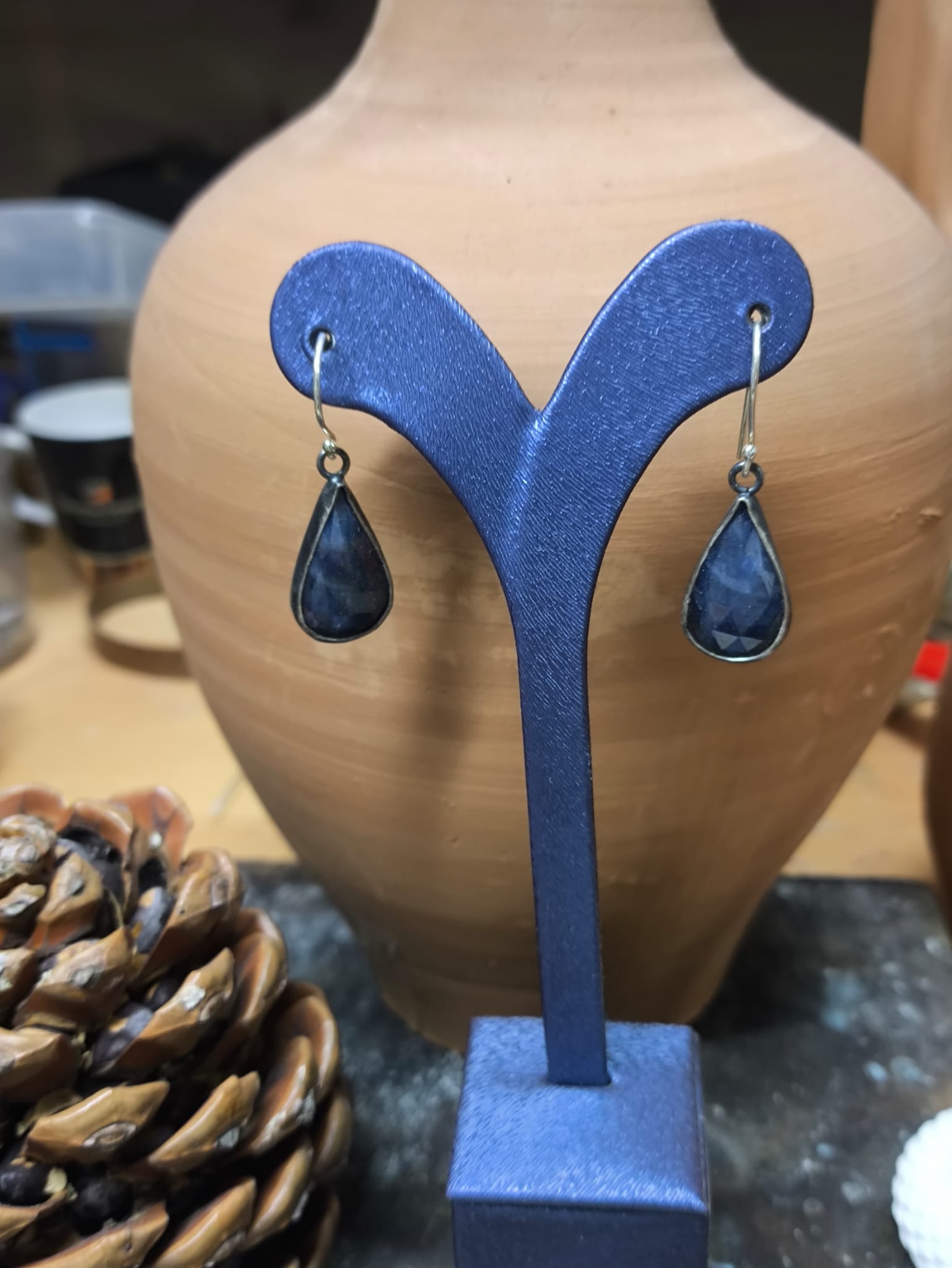 El Yapımı 925 Ayar Gümüş Safir Taşlı Küpe