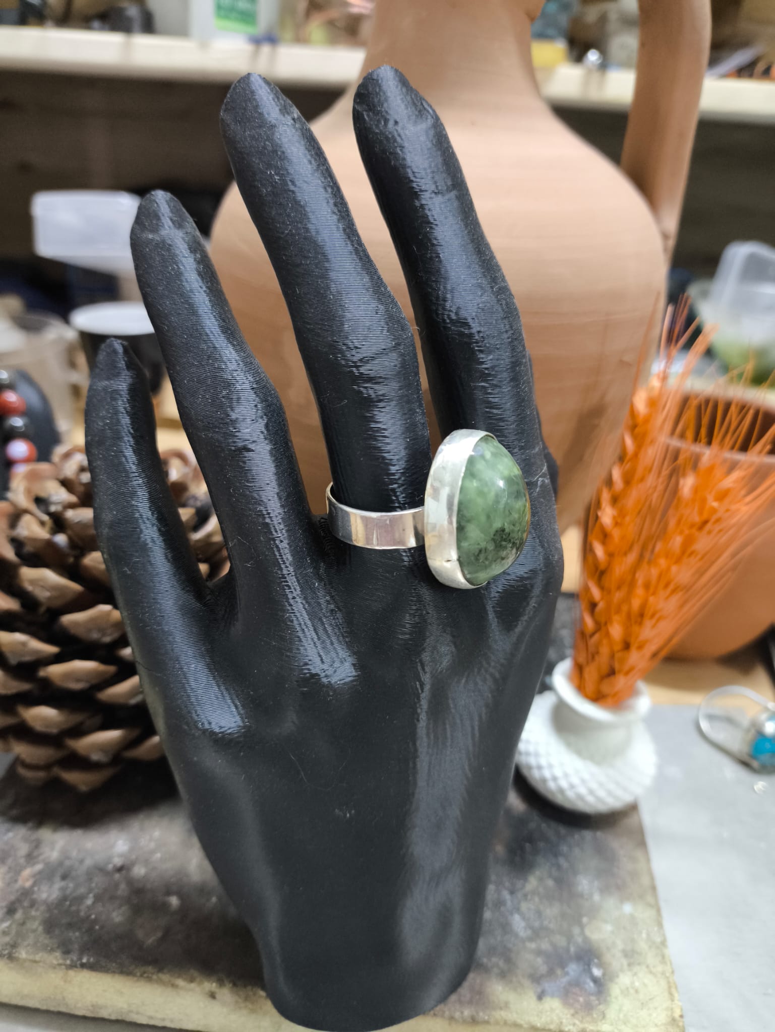 El Yapımı 925 Ayar Gümüş Yosunlu Akik Taşlı Yüzük