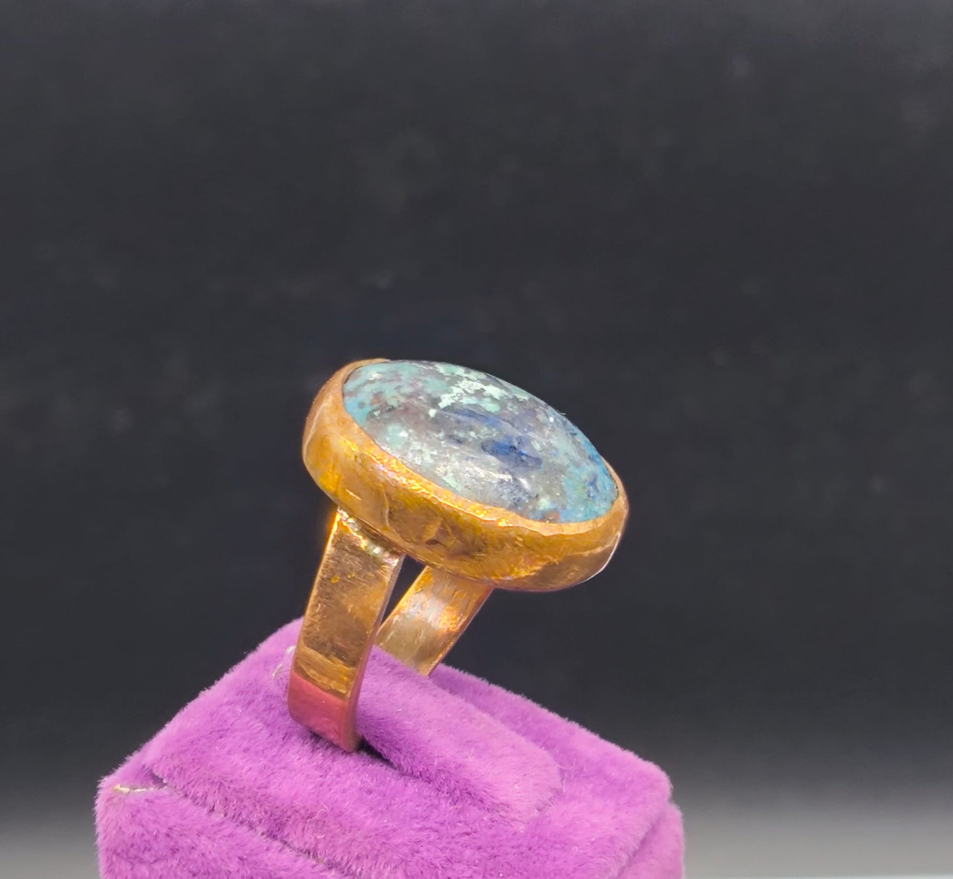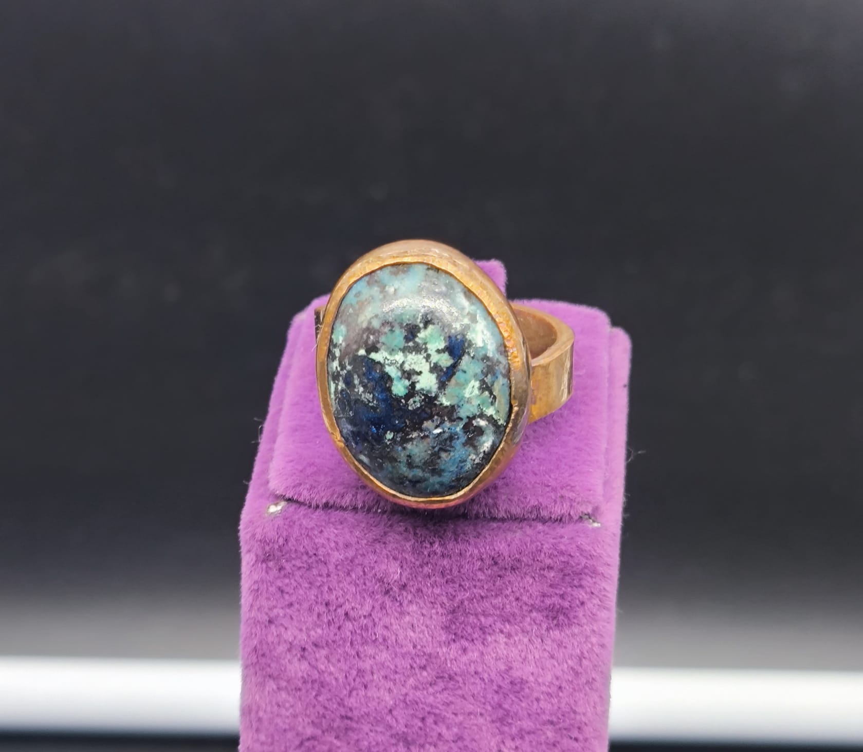 18 numara Krikozol Taşlı bu yüzüğümüz mavinin ve yeşilin eşsiz buluşmasının bakırla buluşmasının eşsiz bir örneği
